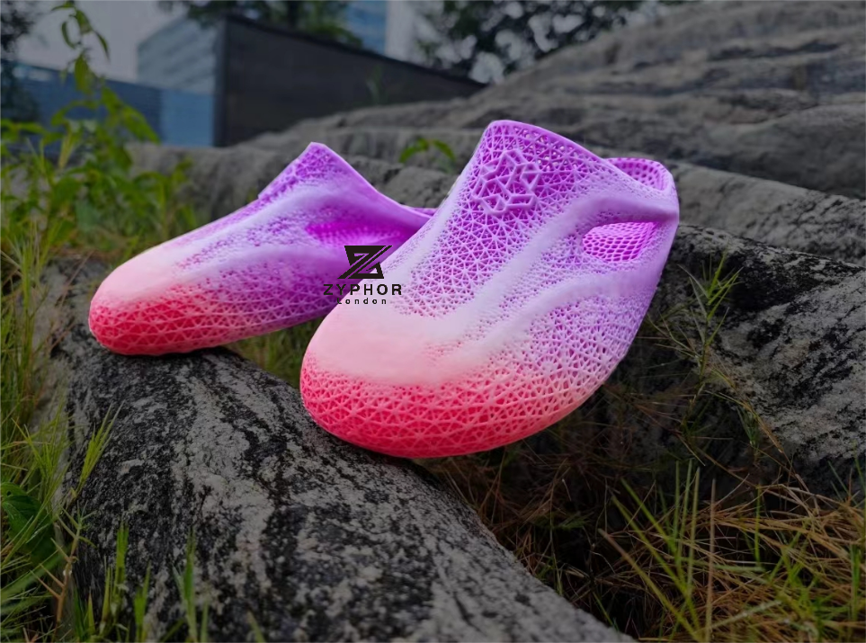 Step into the future with Zyphor BETA β X slippers, crafted using our revolutionary Hindered Asynchronous Light Synthesis (HALS) 3D-printing technology. These cutting-edge, 3D-printed slippers are designed to deliver ultimate comfort while leaving a minimal environmental footprint. Made from ELASTO—a 100% recyclable, non-toxic, and odorless TPU Elastomer—these slippers are as sustainable as they are stylish.